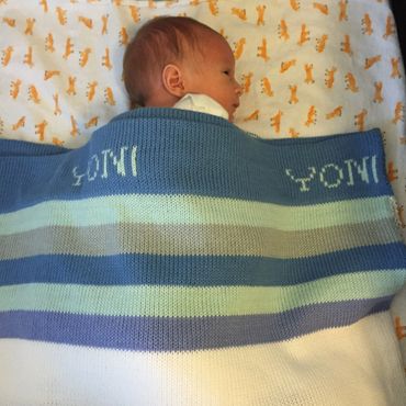 Personalized blankets and baby gifts baby blankets, cotton baby blankets, personalized lovey blankets, Toronto blankets, knit baby blankets,100% cotton, Ellaine Caplan Feferman